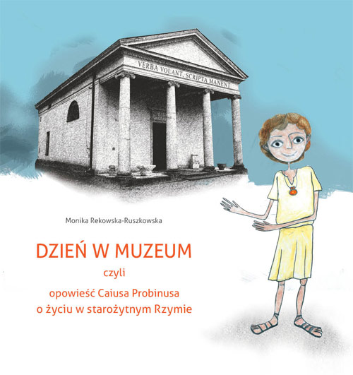 "Dzień w muzeum" to przygoda w dwóch odległych miejscach i dwóch różnych epokach jednocześnie! Na zwyczajnej szkolnej wycieczce w położonym niedaleko Warszawy pałacu w Nieborowie i parku Arkadia uczniowie poznają świat starożytnego Rzymu, oglądając kolekcję greckich i rzymskich zabytków. Zuzia, jedna z uczennic, nawiązuje podczas zwiedzania kontakt z małym Rzymianinem, swoim rówieśnikiem, tyle że żyjącym prawie 2000 lat wcześniej. Podczas tego nadzwyczajnego spotkania Caius Probinus opisuje dziewczynce swoje codzienne życie w Rzymie w czasach cesarza Klaudiusza, przeplatając opowieść propozycjami różnych zabaw, które nie tylko pomagają zapamiętać nowe wiadomości, lecz także rozszerzają wiedzę, a nawet pozwalają na wykorzystanie nabytych informacji w sposób praktyczny (uczą na przykład, jak urządzić rzymską ucztę, antyczne gry itp.).